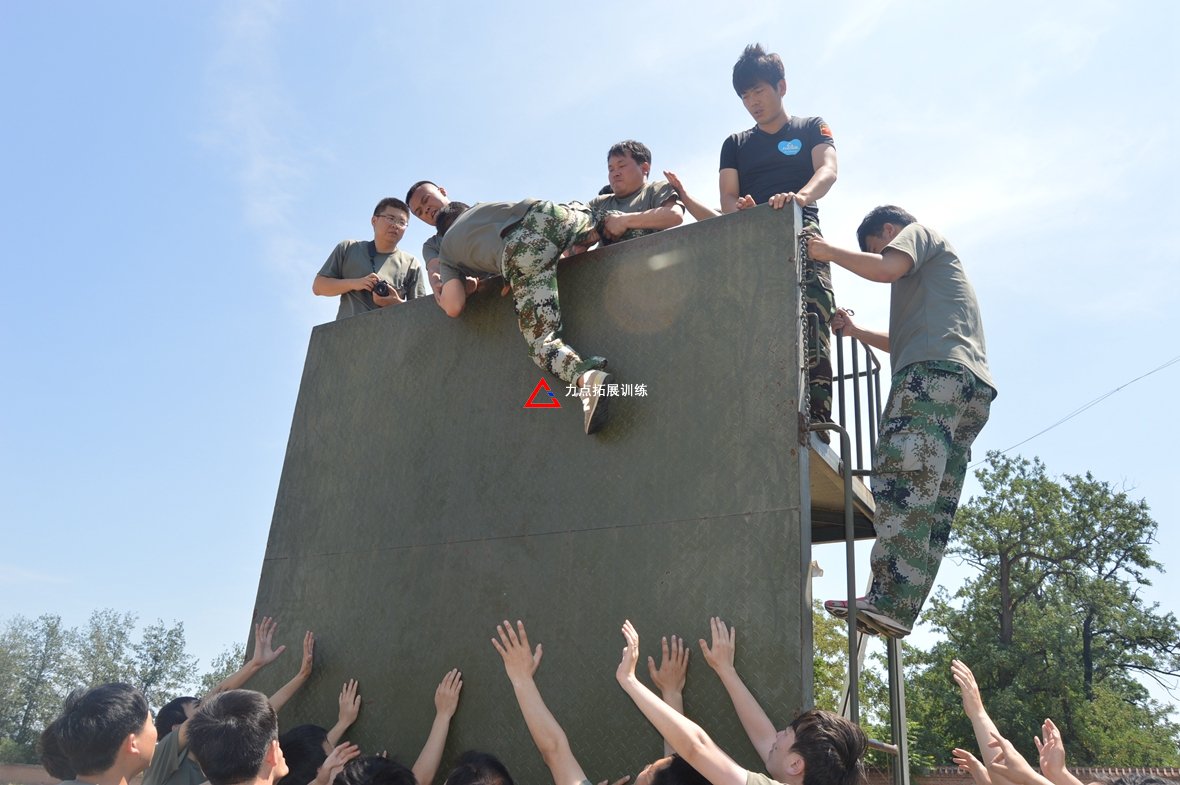 項(xiàng)目介紹:全隊(duì)所有成員在規(guī)定的時(shí)間內(nèi)翻越一面高4.2米的光滑墻面,